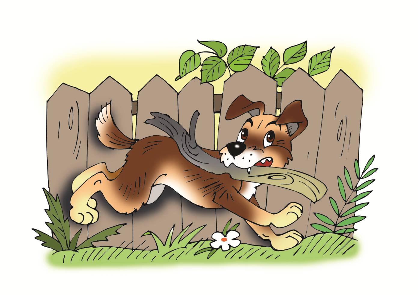 Стоят старики у плетня и беседуют. Гля-дят, бежит к ним беспризорная собака. Испуга-лись старики. Схватил один из них лежавшую на земле, толстую палку и запустил в собаку, да промахнулся.