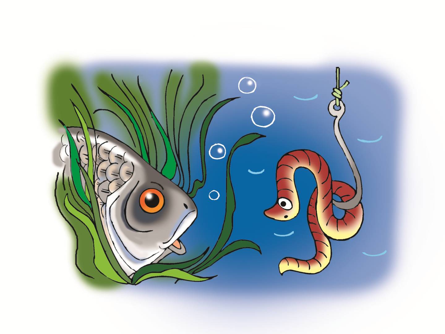 Выбежала из-за кустика Мышка и заду-малась, как ей быть: рыбки дождаться пойман-ной или съесть Червячка?