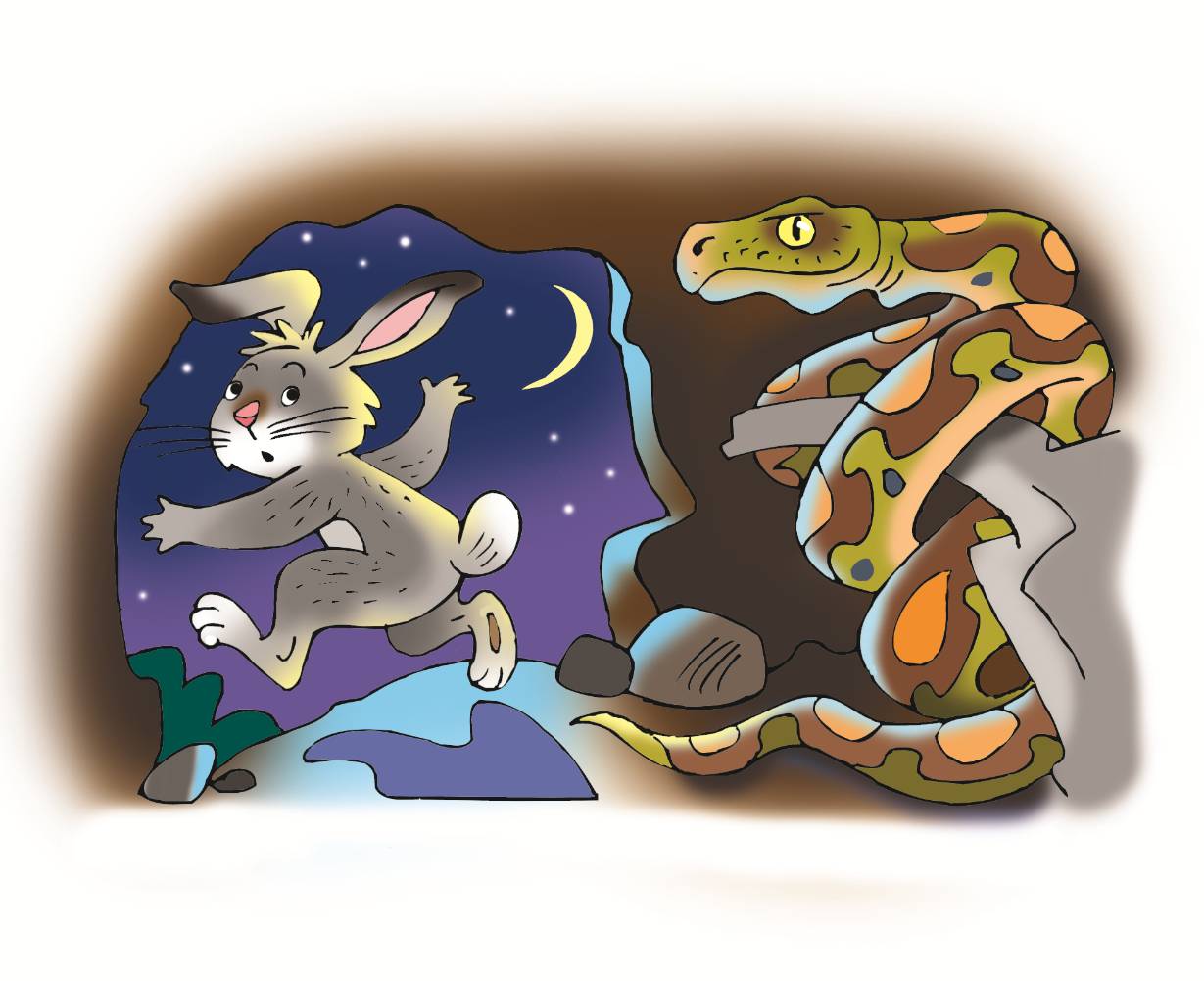 В джунглях вечерело. И трусливый Кролик решил найти убежище, где бы ему безопасно переночевать.