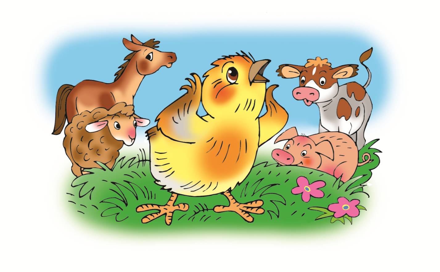 Появился на свет Цыплёнок, окружили его домашние животные и представились ему: кто есть кто.