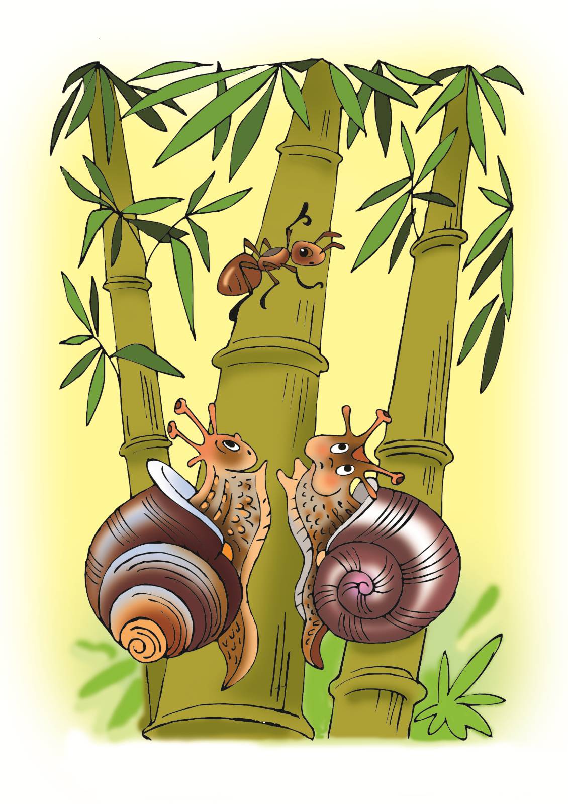 Увидели две Улитки на самой верхушке бамбука лакомый и сочный листик, и заспо-рили: кому он достанется?