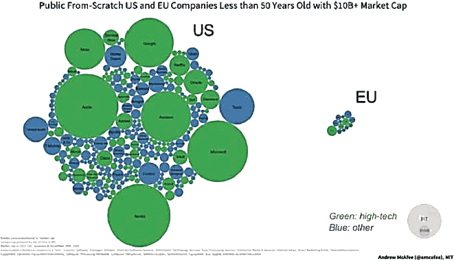 Источник: A Visualization of Europe’s Non-Bubbly Economy. Andrew McAfee (MIT). Dec 02, 2024. URL: https://geekway.substack.com/p/a-visualization-of-europes-non-bubbly (дата обращения: 15.03.2025)