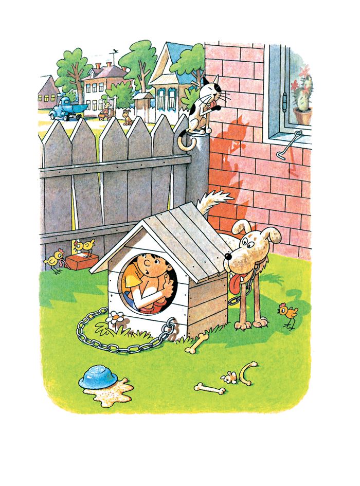– Ты ведь знаешь, какой Дружок, – говорит Мишка. – Он всегда мои вещи хватает! Помнишь, он затащил мой левый ботинок, так что мы его нигде найти не могли. Пришлось мне тогда три дня ходить в валенках, пока другие ботинки не купили. На дворе теплынь, а я хожу в валенках, как будто обмороженный! А потом уже, когда купили другие ботинки, мы этот ботинок, который один остался, выбросили, потому что кому он нужен – один ботинок! А когда его выбросили, отыскался тот ботинок, который потерялся. Оказалось – его Дружок затащил на кухню под печь. Ну, мы и этот ботинок выбросили, потому что если б первый не выбросили, то и второй бы не выбросили, а раз первый выбросили, то и второй выбросили. Так оба и выбросили.