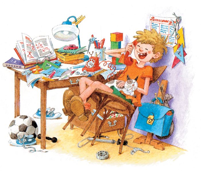 – В печку тоже нельзя. Один раз я их спрятал в печь, а мама пришла и затопила – они и сгорели. Я их лучше на шкаф положу, – говорит Мишка.