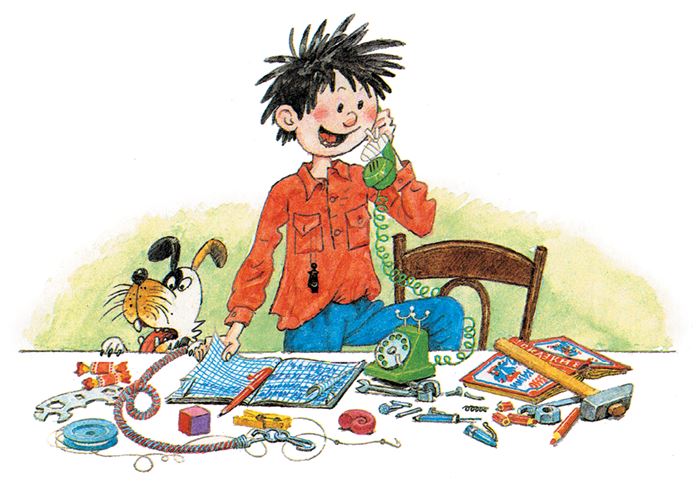 – Ах я разиня! – говорит Мишка. – Забыл! Её надо было там внутри привинтить. Придётся снова разбирать трубку.