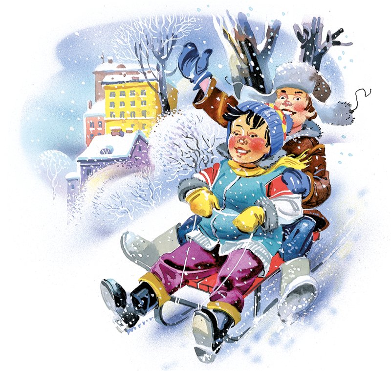 – Так кататься невыгодно. Можно расквасить нос. Пойди-ка ты лучше домой за санками. У тебя ведь есть санки.