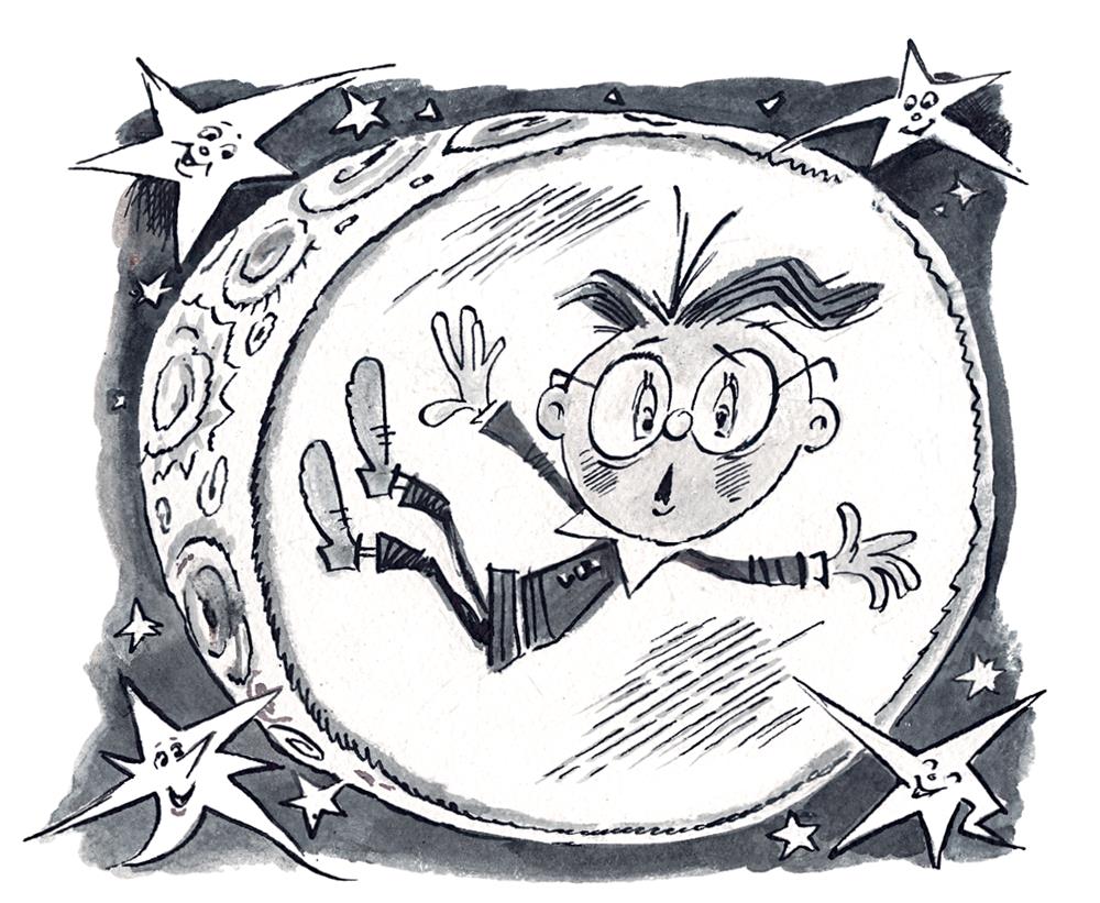 Тут взгляд его упал на карикатуру в газете, где был изображён он сам в центре Луны с таким идиотским выражением на лице, что невозможно было спокойно смотреть.