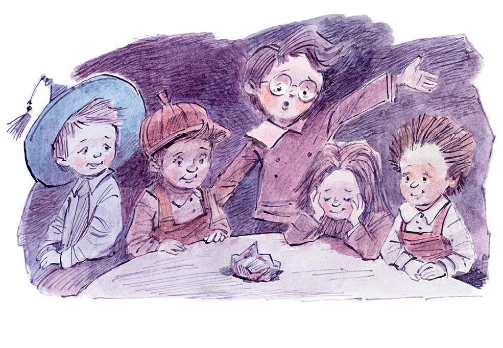 Как только солнышко скрылось за горизонтом, все уже были у Знайки в комнате.