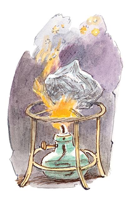 Потеряв надежду растворить лунный камень, Знайка пытался разложить его на составные части посредством нагревания в тигле, но лунный камень не разлагался от нагревания. Знайка пробовал жечь его в пламени, но тоже безрезультатно. Лунный камень, как говорится, в огне не горел и в воде не тонул… Впрочем, неправда. В воде лунный камень тонул, только вся беда была в том, что делал это он далеко не всегда. В каких-то случаях лунный камень тонул, как обычно тонет в воде кусок сахара или соли, в других же случаях он плавал на поверхности воды, словно пробка или сухое дерево. Это значило, что вес лунного камня, в силу каких-то непостижимых причин, менялся, и из вещества, которое было тяжелее воды, он превращался в вещество легче воды. Это было какое-то совсем новое, до сих пор неизвестное свойство твёрдого вещества. Ни один минерал на земле не обладал подобными удивительными свойствами.