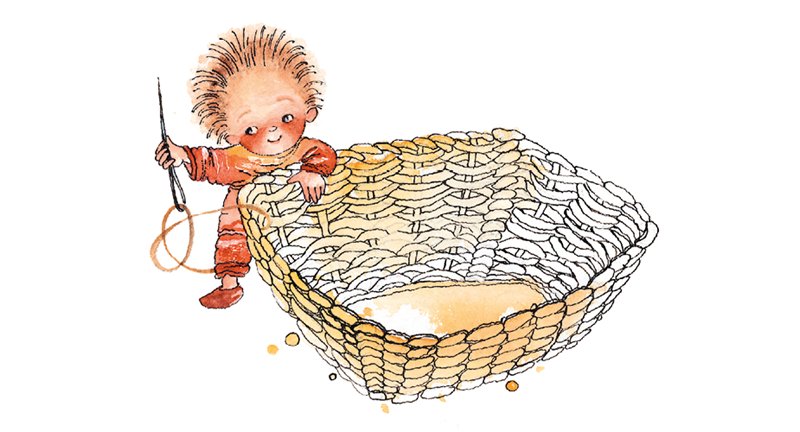 Он привязал шар верёвкой к ореховому кусту, чтобы не унесло ветром, после чего поделил малышей на два отряда. Одному отряду он велел собирать шелковичные коконы, чтобы размотать их и наделать шёлковых нитей. Из этих нитей он велел им сплести огромную сетку. Другому отряду Знайка велел сделать большую корзину из тонкой берёзовой коры.