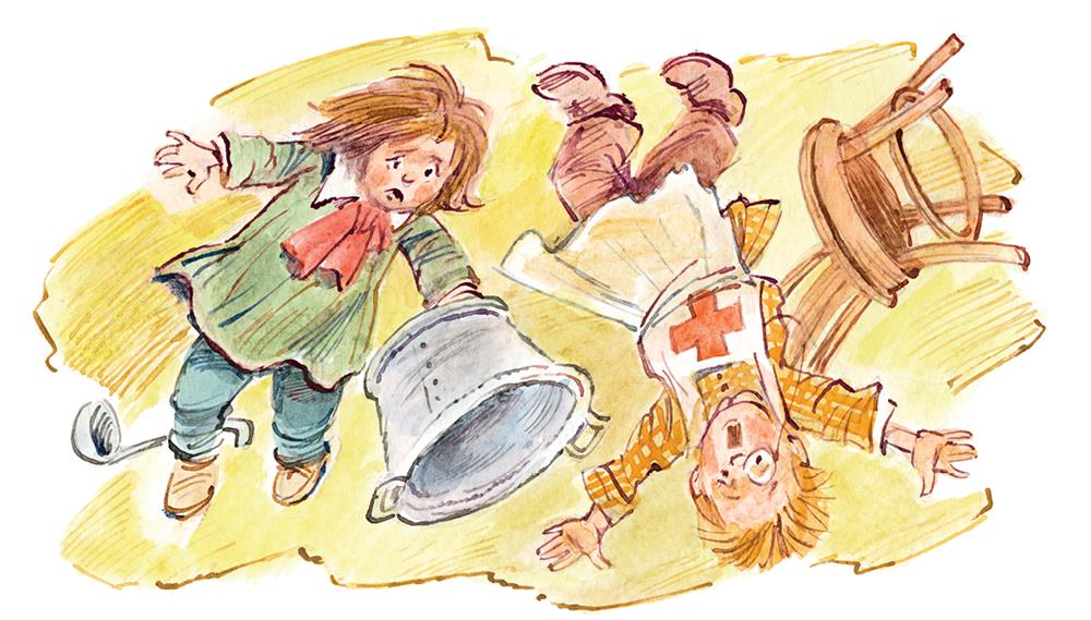 – Ну что за шутки ещё! – завизжал Пончик. – Прекратите сейчас же! У меня голова кружится! Почему стены шатаются? Почему всё перевернулось вверх дном?