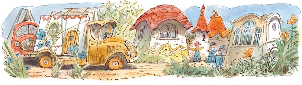 Вскоре коротышки заметили, что по соседству с Цветочным городом, неподалёку от Огурцовой горки, началось строительство. Сюда то и дело подъезжали грузовики, нагруженные строительными блоками из лёгкой пенопластмассы. Несколько коротышек в голубых комбинезонах собирали из этих блоков небольшие, уютные одноэтажные домики.