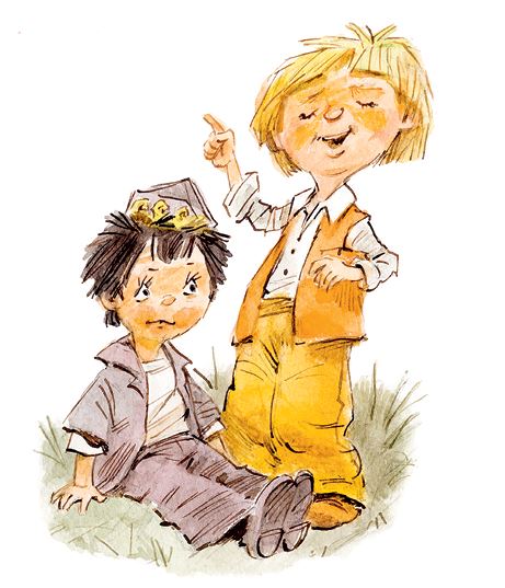 Не успел он это сказать, как свалился. Не доехав до вершины холма, Калачик остановил машину и бросился на помощь Пёстренькому. Незнайка и Кнопочка побежали за ним. Увидев, что Пёстренький цел и невредим, все обрадовались, а Калачик сказал: