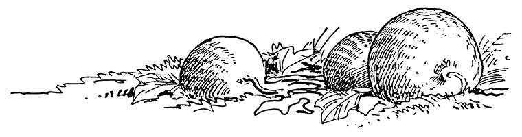 В одном из дворов Незнайка увидел, как малышки убирали огород. Обкопав со всех сторон репку или морковку, они привязывали к её верхушке верёвку, потом хватались за верёвку руками и дёргали изо всех сил. Репка или морковка выскакивала из земли вместе с корнем, и малышки с визгом и смехом тащили её на верёвке домой.