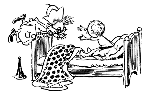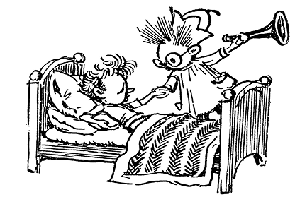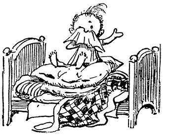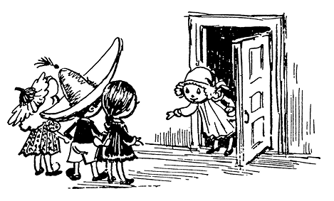 – Вы, наверно, пришли на больных посмотреть? Нельзя, нельзя! Вы забываете, что больным нужен покой. А вы, Синеглазка, уже с пластырем на лбу? Поздравляю! Я вам это предсказывала. Уж мне-то известно, что, как только в доме заведётся хоть один малыш, тут только и жди синяков да шишек.