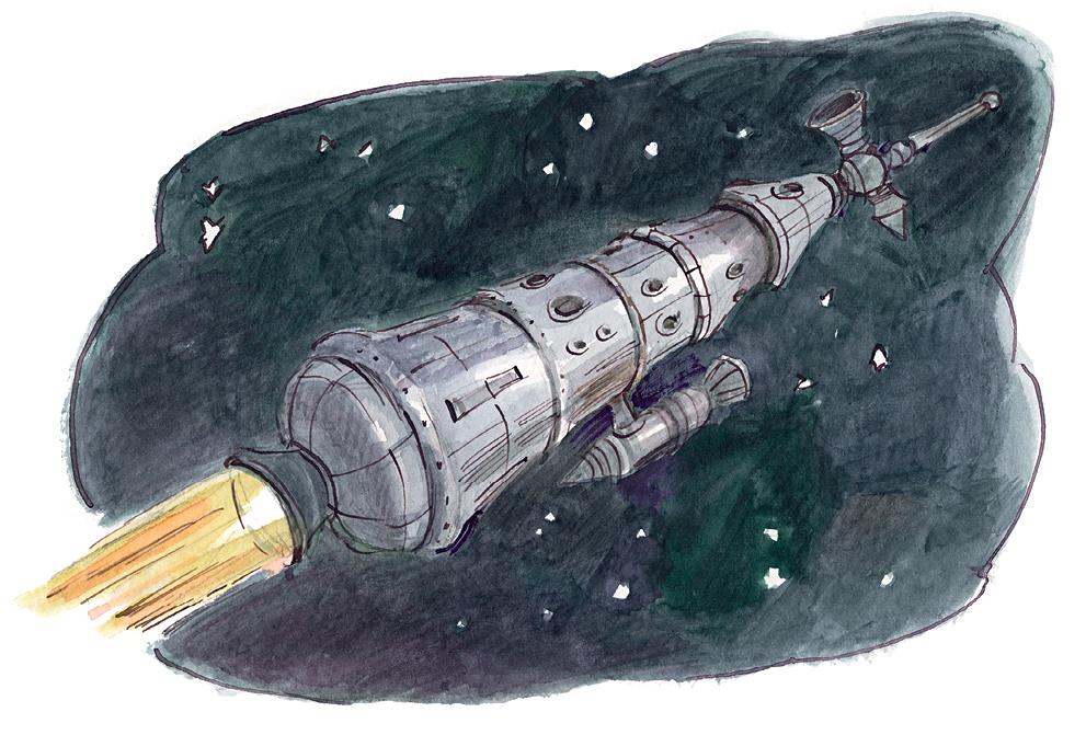 – Я тебе как дам кнопочку! Ты нажмёшь кнопочку, ракета остановится, и мы с тобой застрянем посреди мирового пространства! Нет уж, лучше полетим на Луну.