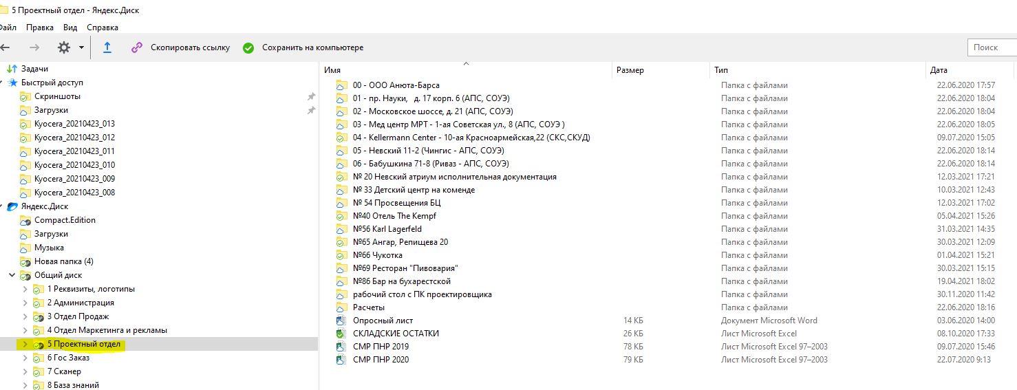 Часто бывает такое, что приходиться вносить правки в коммерческие предложения или в проектную документацию, в таком случае, вы вносите правки и сохраняете документ на Яндекс диске, в ваших папках в любое время дня и ночи должна находиться актуальная информация о направленных клиенту коммерческих предложениях, разработанных проектах и закрывающих документах.