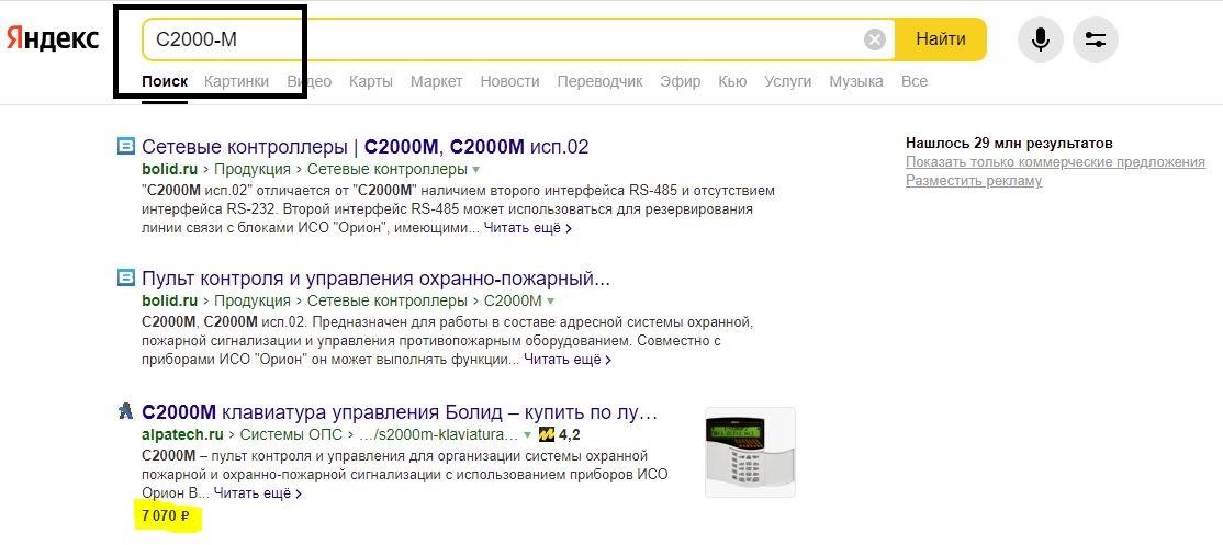 Что бы заполнить колонку «стоимость оборудования», нужно скопировать его название и вставить в поисковую строку Яндекса, обратите внимание что в колонке «тип» указано точное название оборудование, если вы введете в поисковую строку «пульт контроля и управления» поисковик отобразит вам много лишней информации, указывайте точное название «С2000-М» это название самого прибора, только так вы сможете найти то что вам нужно. При выборе цены, пишите среднерыночную, так как клиенты всегда проверяют цены на оборудование таким же путем, как и вы. Клиенты очень недовольны, когда обнаруживают завышенные цены на оборудование и чувствуют себя обманутыми.