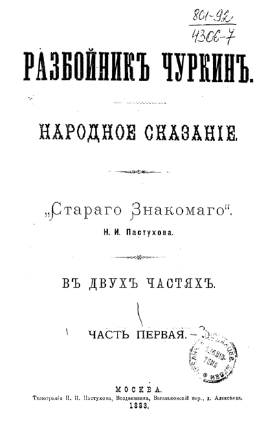 С начала публикаций романа тираж газеты удвоился и затем продолжал расти. Первые три части книги «Разбойник Чуркин. Народное сказание» вышли в Москве в 1883 г., затем роман был продолжен и издан в Петербурге, в 1884 г., в пяти частях.[1]