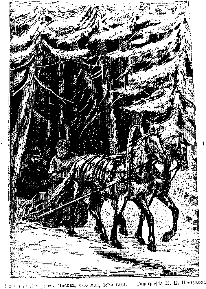Вышел пересёлок; ехавшие за разбойниками приостановились у дорожки, идущей влево; кучер слез с саней и начал отпрягать лошадей и ставить их в запряжку, чтобы ехать гуськом.