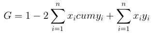 Коэффициент Джини можно посчитать разными способами. Воспользуемся одним из них (тем более что результат везде одинаковый), посчитаем по формуле, которую предлагают специалисты: