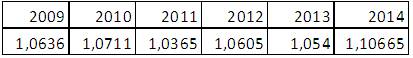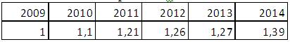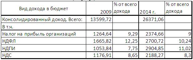 Для оценки использования природных и трудовых ресурсов используем такой агрегатный показатель, как налоговые сборы, которые отражают источники формирования бюджета, а, следовательно, состояние экономики, и дают представление об эффективности использования ресурсов, т.е. национального достояния. Официальные показатели сбора налогов за 2009 г. и 2014 г. (млрд.р.):