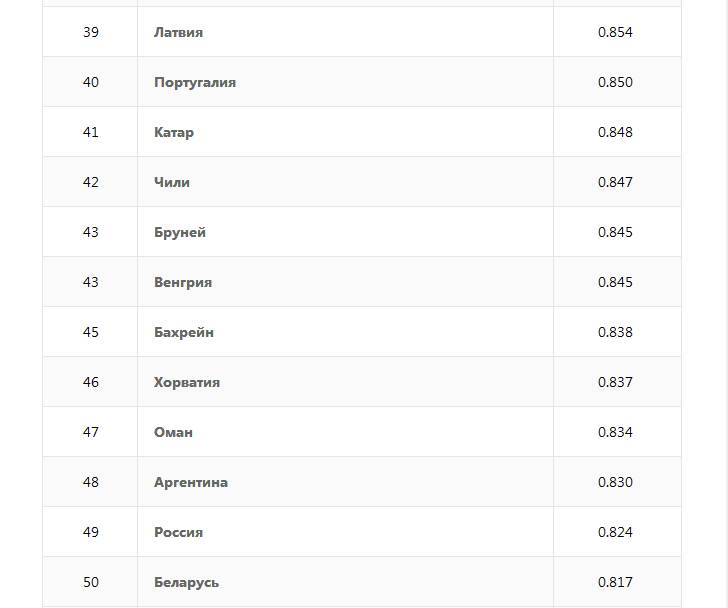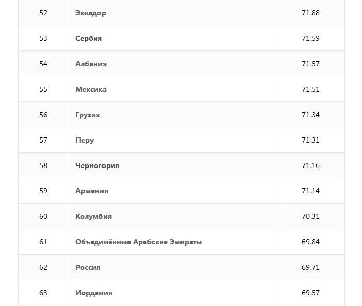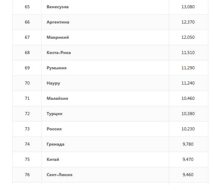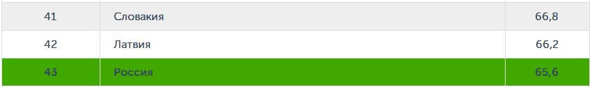 Как видим, Россия на «почётном» 49 месте. А в советские времена входила в десятку.