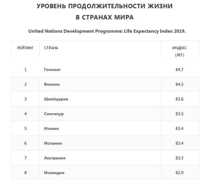 По продолжительности жизни – на 109 месте. Очевидно, пенсионная реформа проводилась, чтобы не отстать в реформах от лидеров – Японии, Швейцарии, Австралии… Только забыли учесть разницу в уровне продолжительности жизни и то, что из 19 лет дожития, на которые рассчитаны пенсионные отчисления, реформами оставили у людей только на 6,5 лет. Остальных отнятых у людей денег, очевидно, не хватало для повышения выплат успевшим выйти на пенсию и гонораров тем, кто занимается реформами.