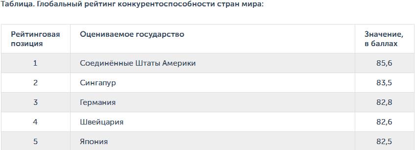 Самая высокая оценка – эффективности работы правительства. Оценка явно завышена, если судить по тому, какое место в прочих рейтингах занимает Россия, куда откатилась страна, начиная с 1985 года, и по обобщающему глобальному рейтингу конкурентоспособности: