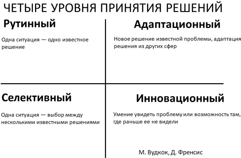 2. Четыре уровня принятия решения: рутинный, селективный, адаптационный и инновационный