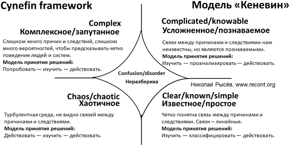 3. Модель «Кеневин» (Cynefin): известное, усложненное, комплексное, хаотичное и неразбериха