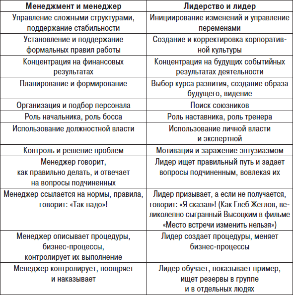 Как вы видите, где-то граница между менеджментом и лидерством достаточно четкая, а где-то зыбкая, расплывчатая. Но общее понимание сути вопроса у нас уже есть. Тогда поехали дальше.