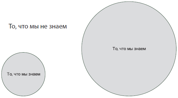 Площадь круга – это то, что человек знает, граница круга, сама окружность – это то, что он не знает. А теперь увеличим наш круг, наши знания.