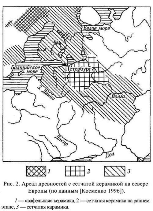 Центром культуры сетчатой керамики стали земли Псковщины, Эстонии и Латвии до реки Двины.