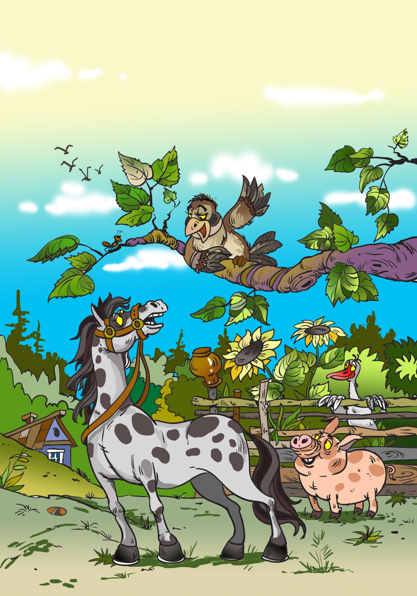 Лошадь расстроилась. Поняла своё несовершенство и принялась его исправлять – разбегаться и подпрыгивать. А взлететь не удалось. Обратилась лошадь к корове, что паслась неподалёку: