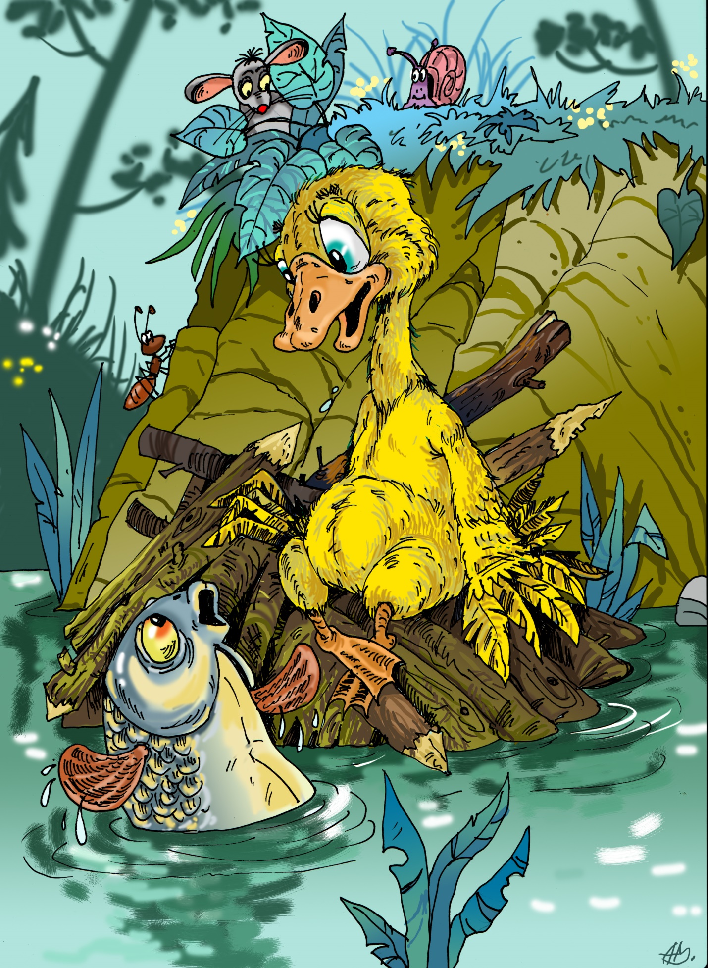 – Жду, – вздохнул утёнок и рассказал рыбке историю своего злополучного путешествия.