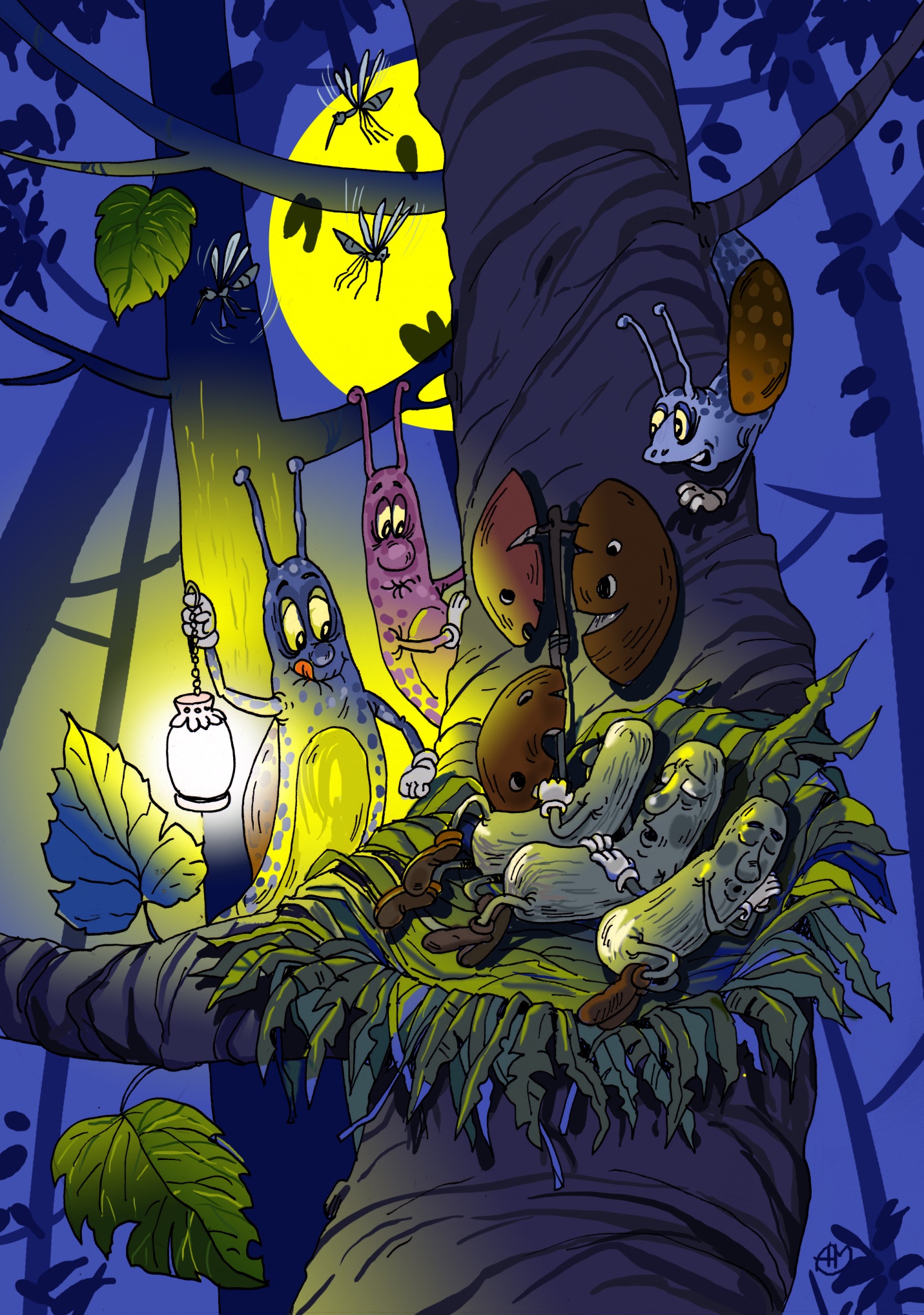 – Ой! У меня живот заболел, – пропищал маленький комарик, напившись сока, и улетел в лесную больницу.