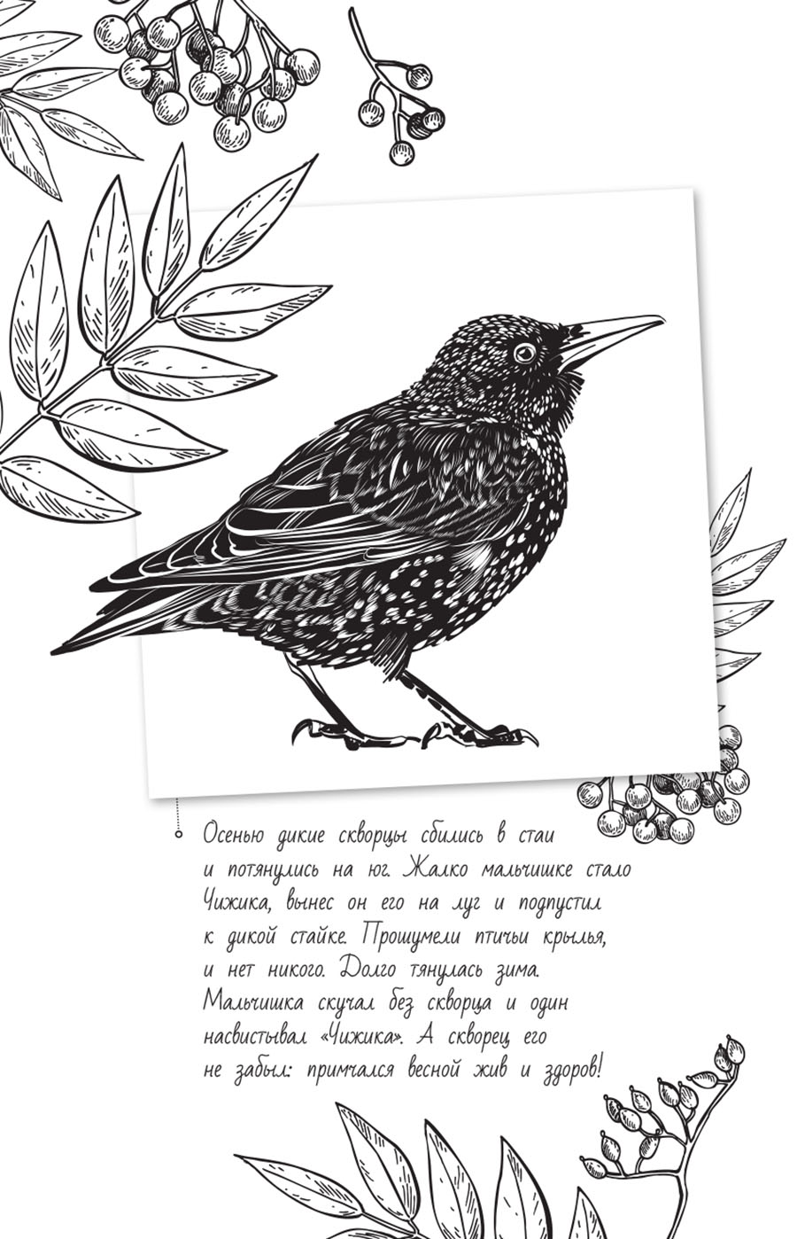 Но был среди них скворец. Пикнет, бывало, заряночка грустно – скворец ей в ответ заряночьим голоском: «ти-ик!» Заряночка насторожится, просвистит что-то. И скворец в ответ просвистит. Заряночка весёлую нотку свистнет – скворец ответит. Потом скворец просвистит – заряночка откликнется.