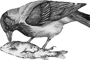 Выручают рыбаков вороны. Рыбы, когда начнут задыхаться, собираются к прорубям и высовывают из воды губы. Вороны сейчас же всё замечают, поднимают крик и слетаются к прорубям со всех сторон. Знают рыбаки: коли кружит над прорубью вороньё, – значит, пришла беда. Хватают они ломы, топоры, пешни и спешат спасать рыбу. Рубят большие проруби, чтобы в них, как в широко раскрытые окна, ворвался свежий и чистый воздух. По первому вороньему сигналу все спешат, как один.