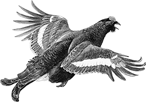Слетает один с берёзы на белую поляну, надувает шею, как петух. И семенит ножками по снегу, семенит. Крылья полусогнутые волочит, бороздит крыльями снег – нотные строчки вычерчивает.