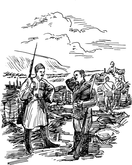 Александропольцы просидели в кустах долго. Начальство смыкало фланги, подтягивало артиллерию, потом последовала команда развести костры и пообедать. Застучали топоры. Отделенный командир куда-то сходил и принес большую банку консервов: тушеная картошка с бараньим салом. Линейцы повеселели. Они наелись горячего, запили кипятком с сухарями и развалились на шинелях отдыхать. Ожидание боя, к удивлению Лыкова, не было мучительно-томительным. Солдаты вынули карты и весело били друг другу щелбаны. Никто не сидел с бледным лицом и не молился… Но когда рядовой Брешалов выругался по матери, к нему подошел старослужащий и дал сильную затрещину. В назидание сказал: