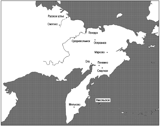 В настоящей книге очерченная выше проблема рассматривается в основном на материале трех групп, избранных в качестве примера: поселок Русское Устье на Индигирке, поселок Походск на Колыме и поселок Марково на Анадыре. При этом сведения о других населенных пунктах и других старожильческих группах привлекаются в качестве фона и материала для сравнения.