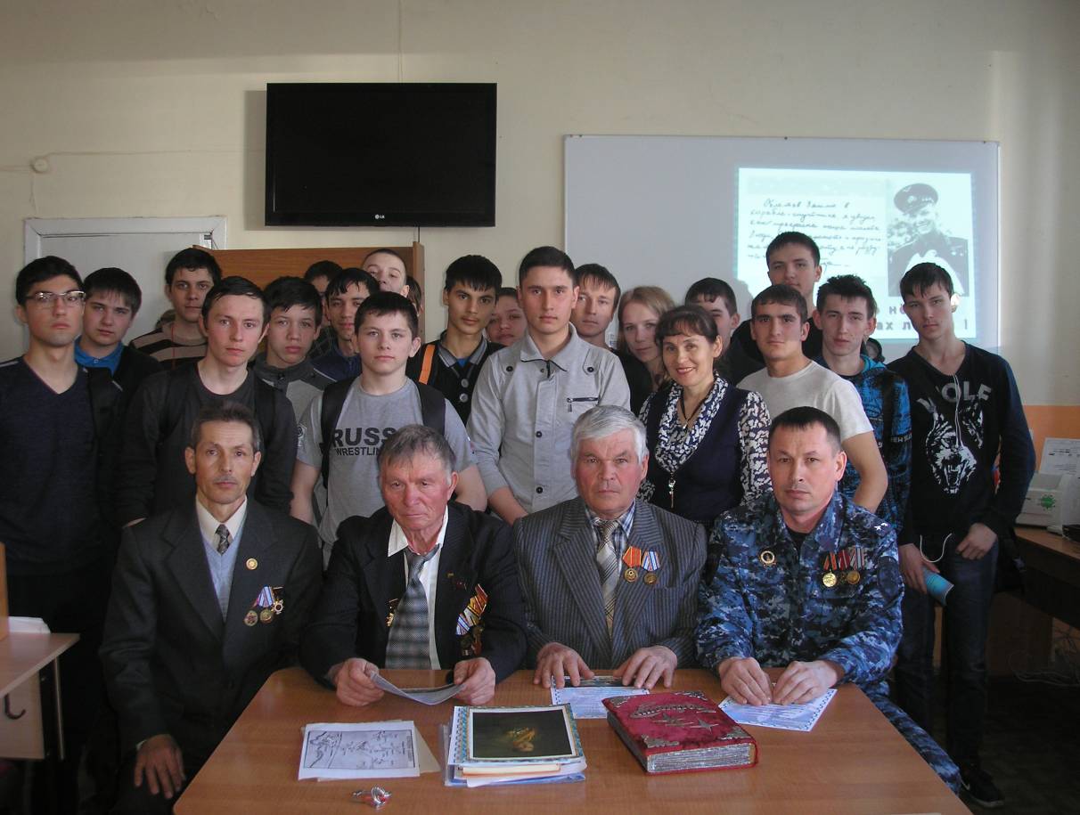 Встреча студентов Вурнарского сельскохозяйственного техникума с ветеранами космодрома Байконур (Н.И.Васильев, В.Д.Скворцов, Г.И.Иванов, А.Н.Сорокин).