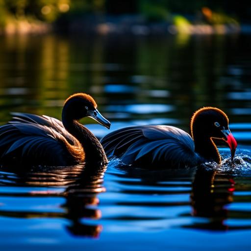 На красивом озере в глубине непроходимого леса, расположенного на территории Австралии, поселилась красивая пара черных лебедей. Как они здесь оказались, никто не знает.
