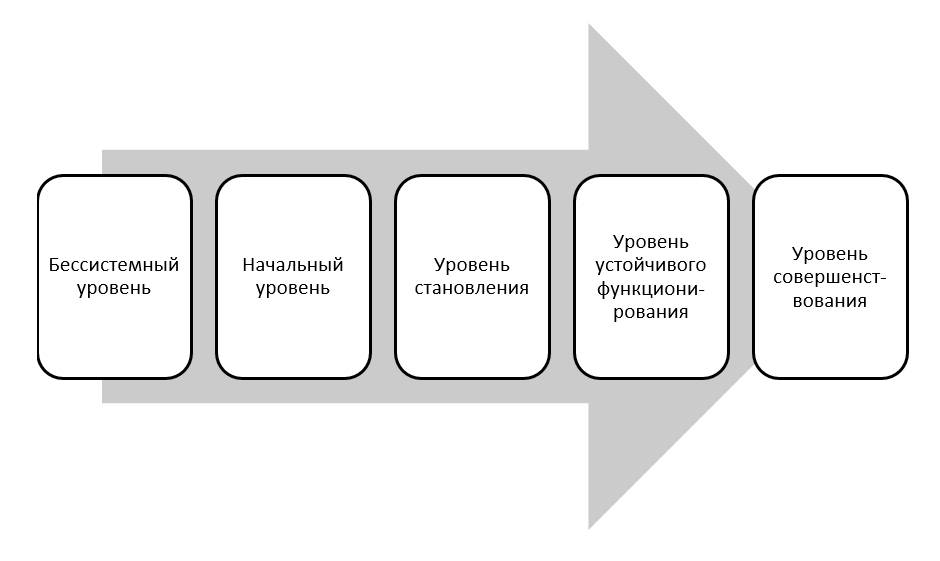 Для определения уровня развития системы безопасности можно использовать классификацию, включающую пять уровней развития организаций [49], и, соответственно, переработав ее, получить уровни, показанные на рис. 1.2.