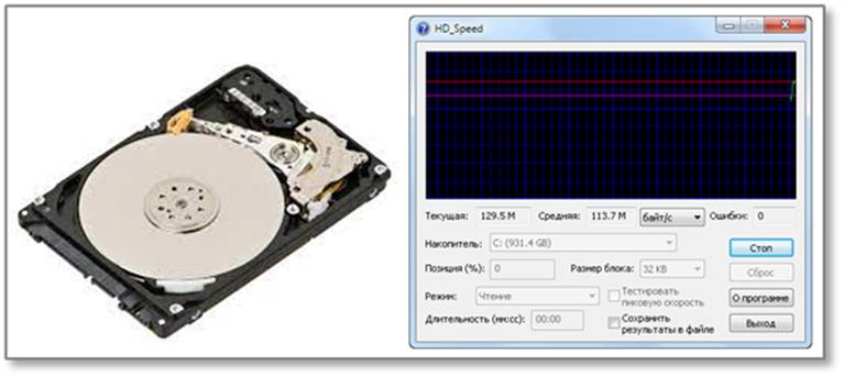 Рисунок 1.17 – Жёсткий диск и программа для измерения параметров
