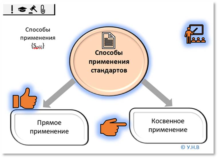 Косвенное применение международного стандарта – применение международного стандарта посредством другого нормативного документа, в котором этот стандарт был принят. На рисунке 1.20, показана визуализация способов применения международных стандартов.