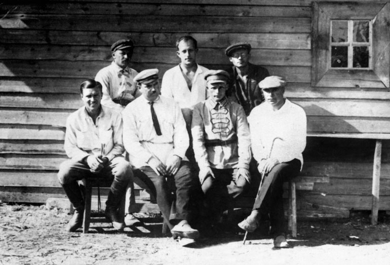 Бригада № 3 ЦКБ-39. Второй справа сидит С.В. Ильюшин с сотрудниками ЦКБ-39. За ним в центре стоит начальник бригады № 3 В.А. Чижевский