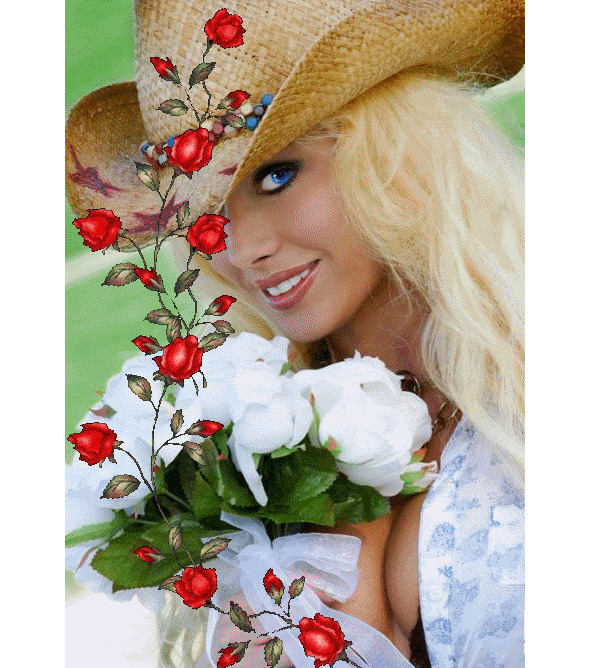 А в руке розы цвета пурпура.