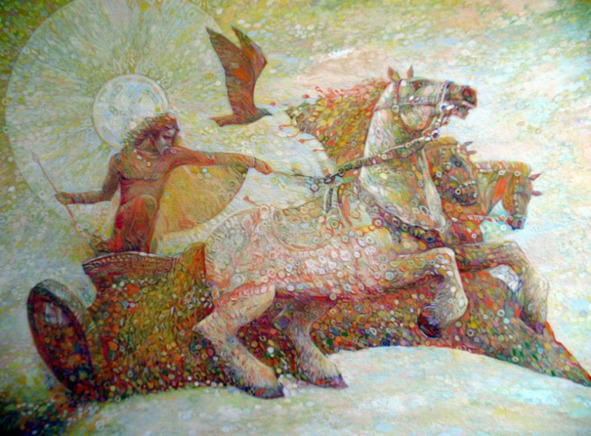 Эта былина в сказке снежной.Богатырей с плечами в сажень.То сабля в взмахе сильном.То меч разрезал воздух, взмахом.Силён-силён враг пришедший.Страшен взгляд и крик врезал.В снежной бури, вихрей снежных.На богатыря с пикой острой, враг пришёл.Враг летит в седле коня.Но снег глубокий и режет ноги.Конь повален и враг сражён.В силе богатырской нет равных.Богатырь устал, пот со лба убрал.Русь земли родной он сохранил.Сил и мочи не жалел.В ранах грудь, лицо и ноги.Капли алой крови, закапали снег.Но он счастлив, в снежной бури.На колени он не встал.Покачиваясь в силе буйной, в мороз трескучий.Богатырь нашей Руси, герой земли зимы.Это было так давно и близко.Земля дрожала от табуна врага.Снег был залит алой кровью.Взмахе рук и оружия сражения.Время прошло, былью заросло.О богатыре и героев тех времён.В силе и героизме тех остриёв мечей.Быль была и будет во все времена и года.27-12-2017г.